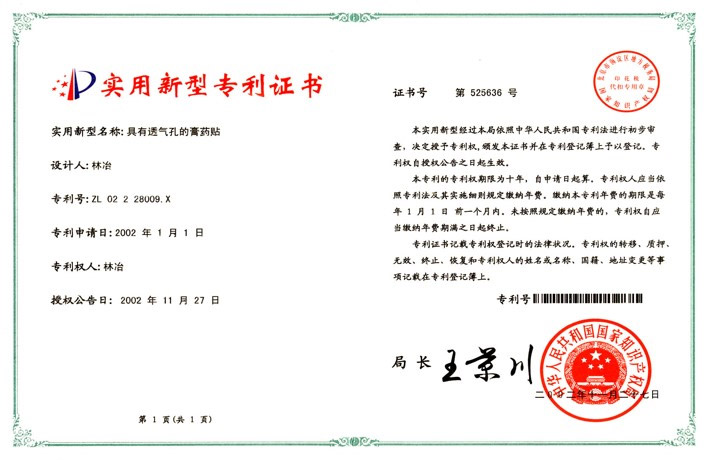 實(shí)用新型專利證書